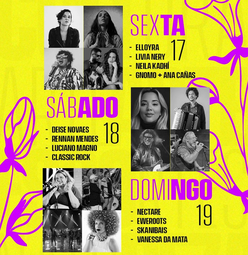 “Prepare-se para viver três dias de pura energia com apresentações inesquecíveis de Ana Cañas, Vanessa da Mata, Luciano Magno, Skankibais, Lívia Nery, Deise Novaes e muito mais!”