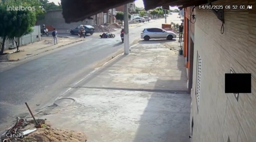 Colisão entre carro e moto é registrada por câmeras de segurança em Paulo Afonso