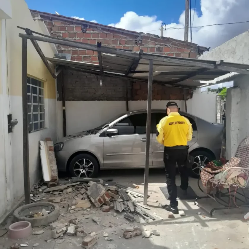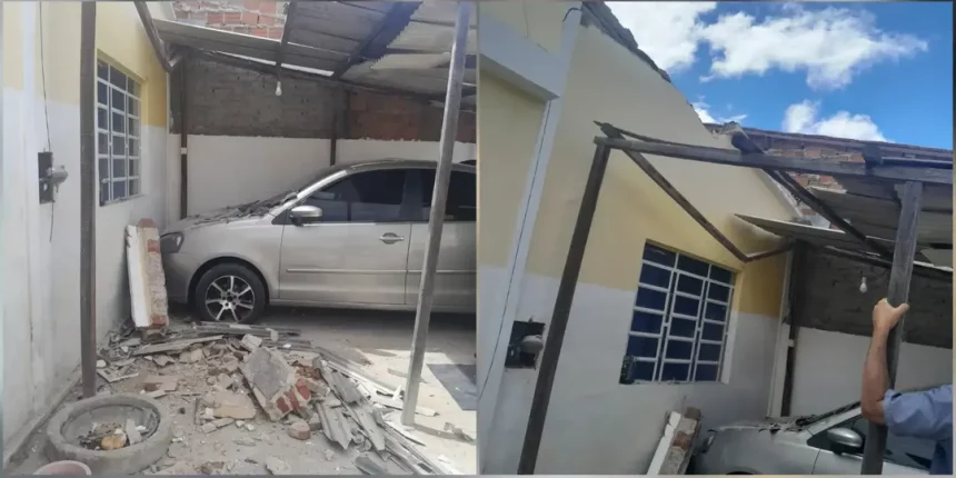 Na terça-feira (28), o Grupamento de Trânsito (GTRAN) de Paulo Afonso, na Bahia, registrou uma ocorrência no bairro BTN 2. Um caminhão acabou arrastando um fio de energia elétrica e, com o impacto, parte de uma parede foi derrubada, atingindo um veículo que estava estacionado dentro de uma garagem na Rua Santa Rita.