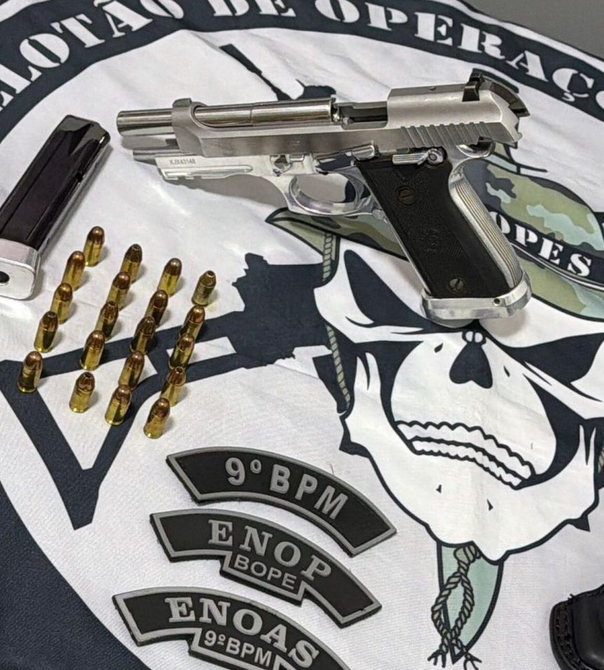 Segundo o boletim de ocorrência, os militares localizaram o suspeito dentro de um veículo. Na abordagem, foi encontrada uma pistola Taurus calibre .380, além de um carregador com 20 munições intactas do mesmo calibre. Após consulta ao sistema, a polícia verificou que o homem já tinha passagens por lesão corporal e porte ilegal de arma de fogo.