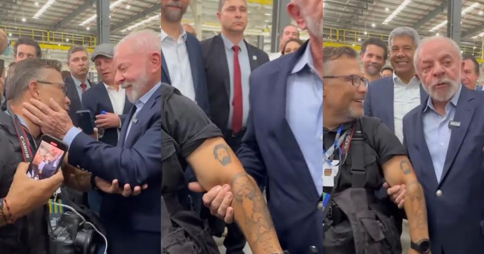 “Eu te amo”: homem surpreende Lula na Bahia ao mostrar tatuagem com o rosto do presidente