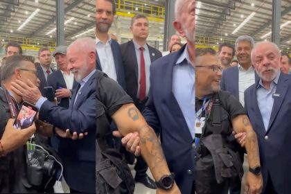 “Eu te amo”: homem surpreende Lula na Bahia ao mostrar tatuagem com o rosto do presidente