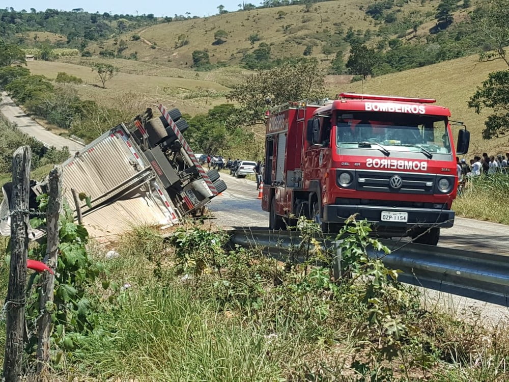 Duas pessoas morrem e outra fica gravemente ferida após caminhão tombar em rodovia da Bahia