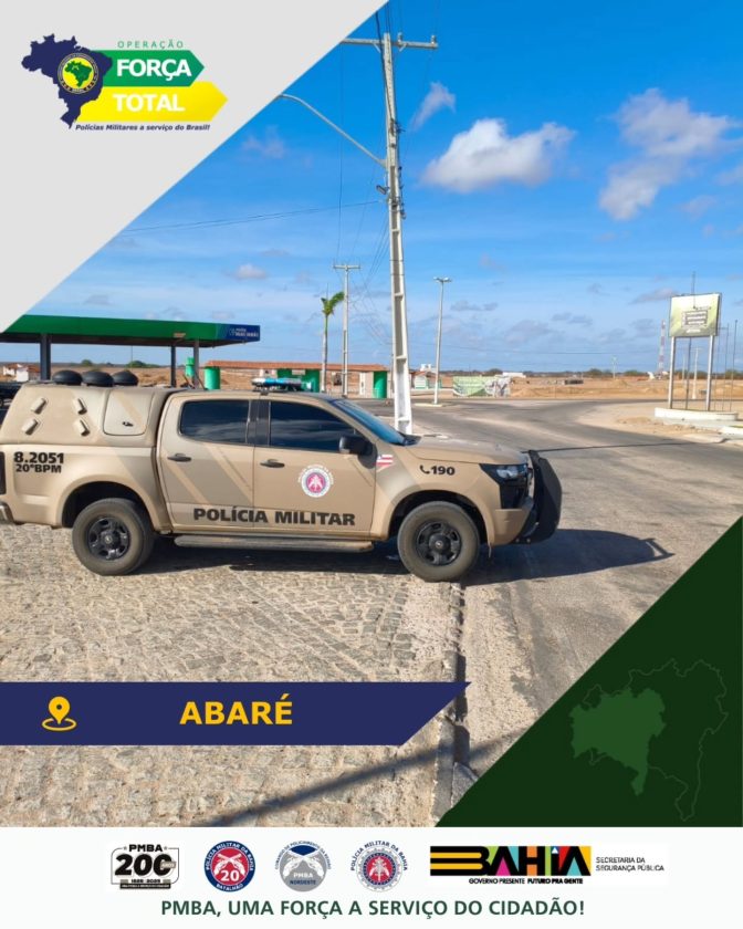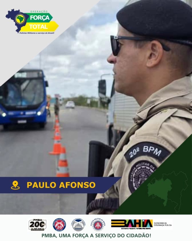 A Polícia Militar da Bahia (PMBA) deflagrou, na quinta-feira, 16 de outubro, a 10ª edição da Operação Força Total em âmbito nacional. Na área do 20º Batalhão de Polícia Militar (20º BPM), com sede em Paulo Afonso, o efetivo foi mobilizado para reforçar o policiamento ostensivo nos dez municípios sob responsabilidade da unidade.